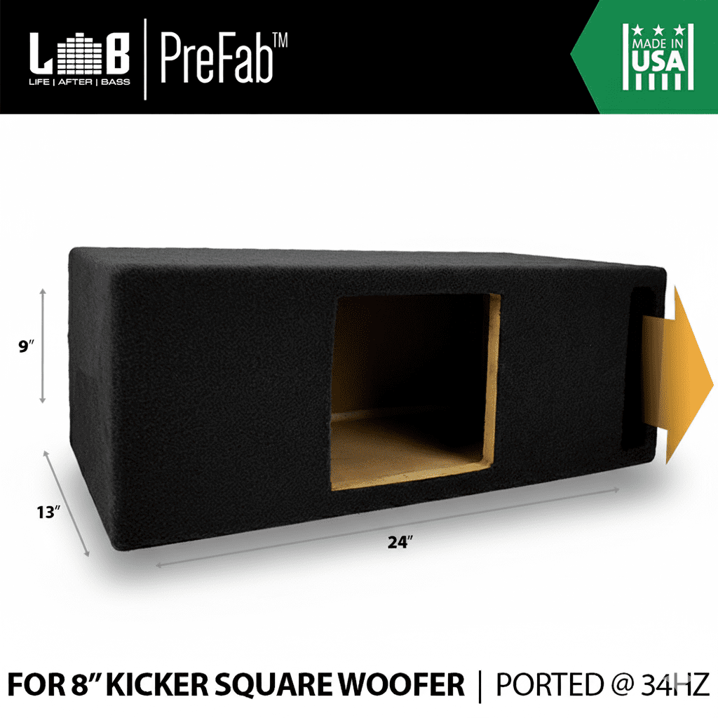 LAB PreFab™ 0.80 ft^3 Ported MDF Enclosure Box for Single 8" Kicker SoloBaric Square Subwoofer